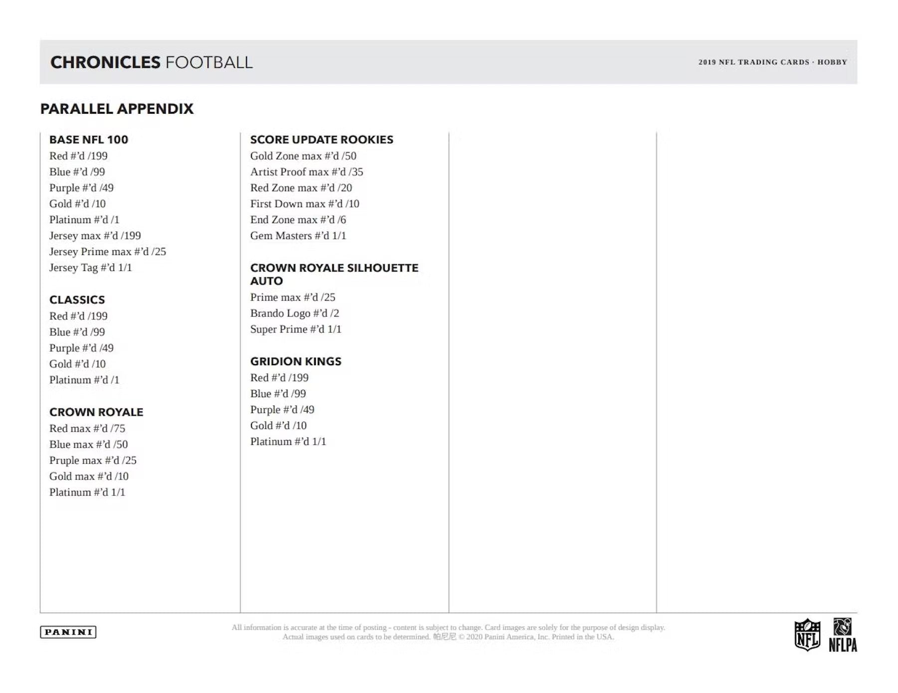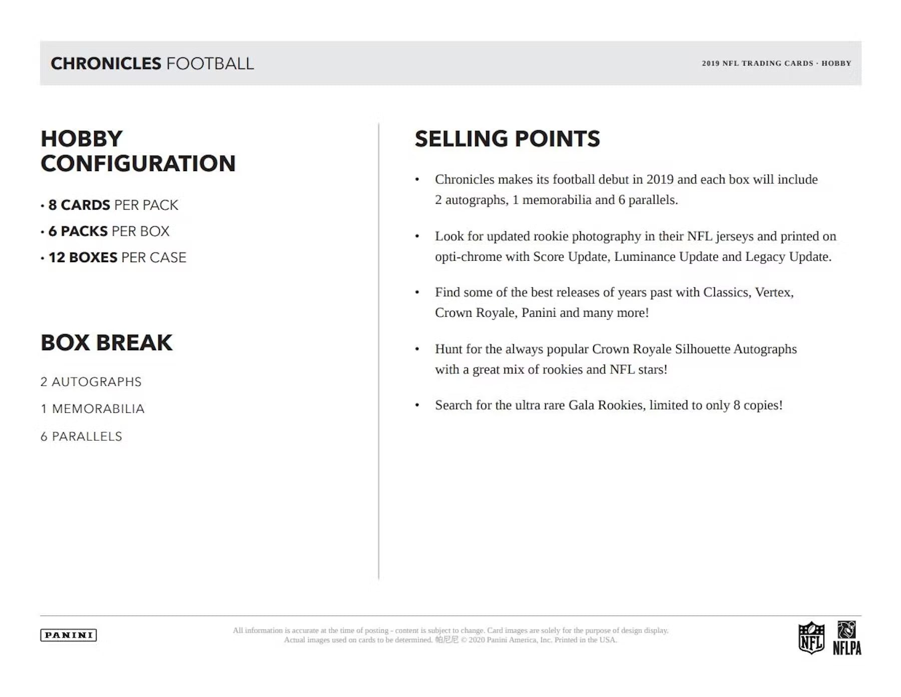 Look for updated rookie photography in their NFL jerseys and printed on opti-chrome with Score Update, Luminance Update and Legacy Update.